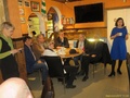 Kulttuuri- ja opetusministeri Sanni Grahn-Laasonen poikkesi Somerolla Jussin Baarissa ti 4.4. Yleisöäkin saatiin paikalle mukavasti.